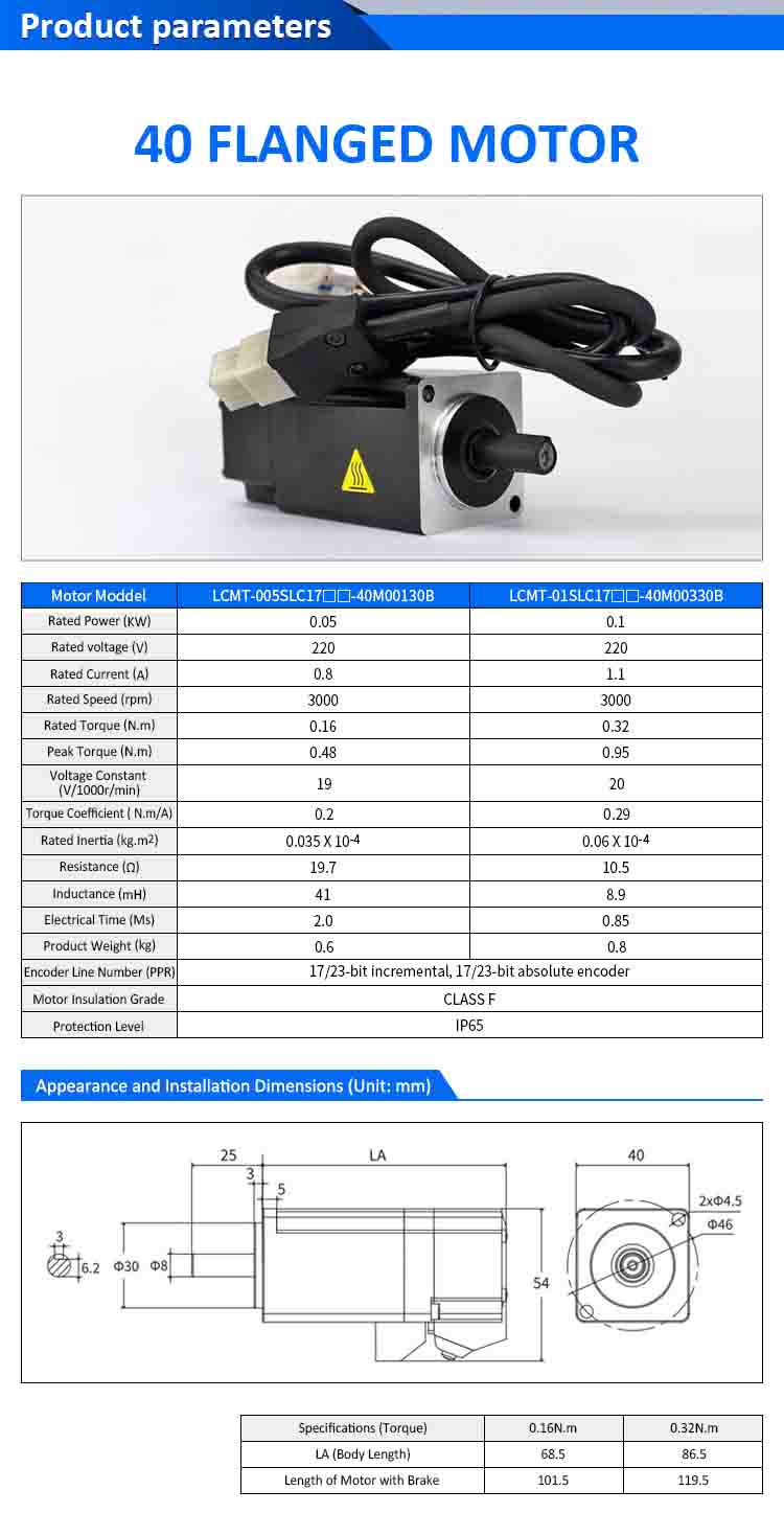 | Motor modeli | LCMT-005SLC17-40M00130B | LCMT-01SLC17-40M00330B |